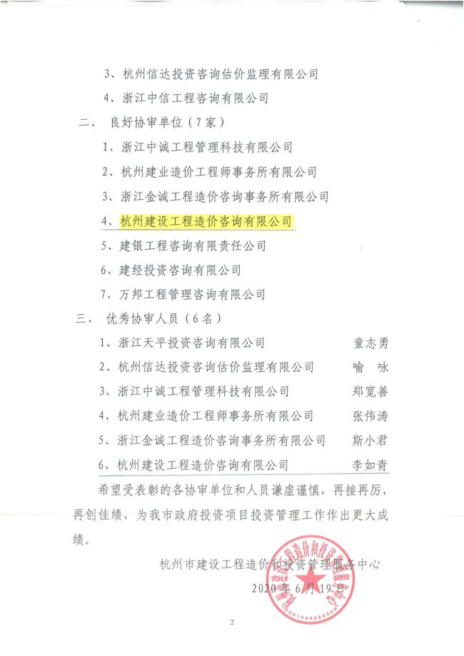 2018年度杭州市地铁集团优秀造价咨询单位