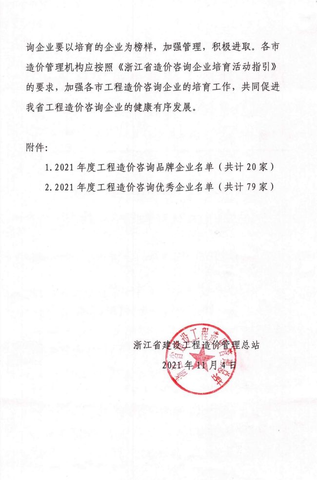 2021年浙江省工程造价咨询优秀企业